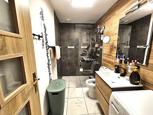 Při vstupu na pozemek se nachází průjezd s parkovacím místem a vstup na dvorek, kde je dost místa na posezení i relax ve vířivce v absolutním soukromí. V domě je veranda, kuchyň s krbem, obývací pokoj, 2 koupelny, ložnice s dalším pokojem. Na tuto část domu navazuje dílna s krbem, vodou a elektřinou - možnost rozšířit o obytný prostor či si ponechat zázemí pro domácího kutila. Celý pozemek skýtá úplné soukromí.