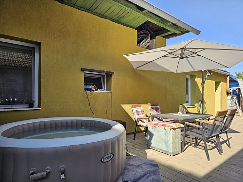 Na dvorku se nachází malebný klubový sklípek, který může posloužit k uskladnění potravin, zavařenin či vína, dále je zde možnost k případnému vytvoření posezení k relaxaci a strávení příjemných chvil s přáteli.