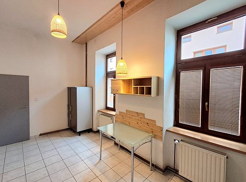Byt se nachází v cihlovém domě v centru města Jevíčka, nedaleko náměstí. Je vhodný pro jednotlivce, mladý pár i jako startovací bydlení.
