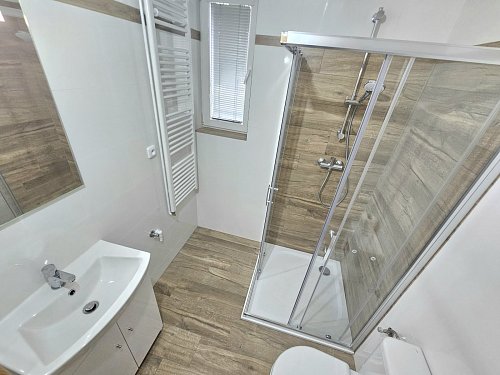 - Vše nové, vše pro Vás: Byt prošel kompletní, promyšlenou rekonstrukcí. Můžete se těšit na moderní koupelnu se sprchovým koutem, která je oázou relaxace, a na zbrusu novou kuchyňskou linku s vestavěnou troubou, kde bude radost vařit.